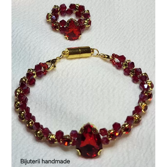 Mărgele de cristal fațetate și pietre rhinestones roșii ,imbogățite cu o închizătoare magnetică aurie .