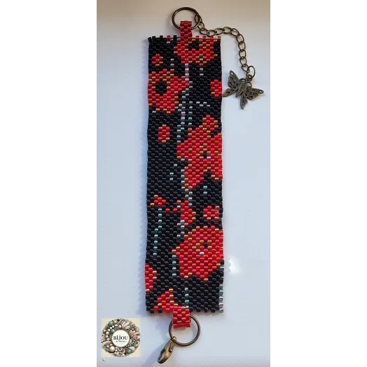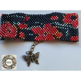 Brățară Handmade "Macii Pasiunii" - Bijou by Marian Adaugă un strop de artă și tradiție în ținuta ta cu această brățară unicat realizată manual din mărgele Miyuki Delica, într-un model floral vibrant, ce redă cu eleganță imaginea delicată a macilor înfloriți. Fundalul negru pune în evidență intensitatea nuanțelor de roșu, portocaliu și accentele fine de turcoaz și argintiu. Brățara este lucrată cu migală în tehnica peyote, iar închiderea este realizată cu un sistem metalic de culoare bronz antic, decorat cu un charm în formă de fluture, adăugând un plus de feminitate și originalitate. Detalii produs: Materiale: Mărgele...