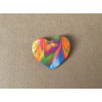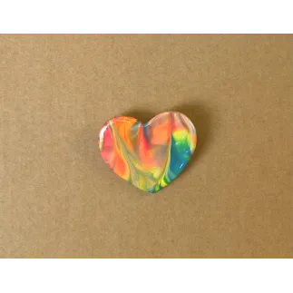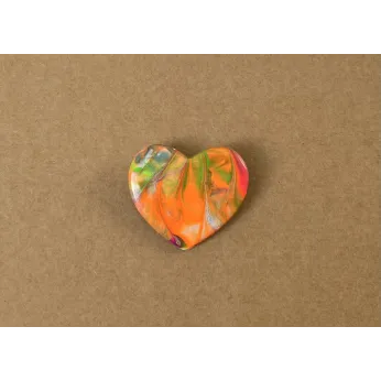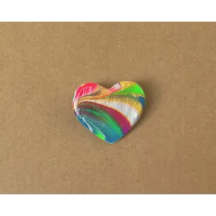 Brosa in forma de inima, realizata din lut si vopsea, si lacuita cu vernis. Prinderea se face cu ac de brosa din inox. Dimensiune: 3,7 x 3,4 cm. A se depozita intr-un loc inchis, ferit de razele directe ale soarelui, departe de obiecte grele sau ascutite care ar putea deteriora brosa.