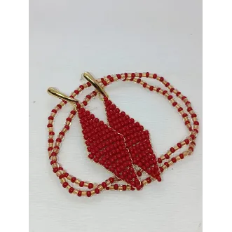 Adaugă un plus de eleganță ținutelor tale cu acest set handmade de cercei și brățară realizat din mărgele de nisip roșii și aurii, perfect pentru un look modern, feminin și rafinat. Setul este realizat manual cu atenție la detalii, ceea ce îl face o alegere deosebită pentru ocazii speciale sau pentru purtare de zi cu zi. Cerceii, cu lungime de 6 cm, sunt creați pe sârmă inox placată cu aur, având tortițe rezistente și potrivite chiar și pentru pielea sensibilă. Modelul geometric din mărgele roșii conferă un aspect spectaculos și plin de personalitate. Brățara, cu lungime de 18–19 cm, este realizată din mărgele de nisip...