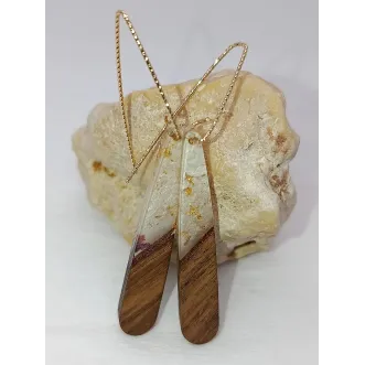 Adaugă o piesă de artă contemporană colecției tale de accesorii! Cerceii Golden Fusion reprezintă o fuziune spectaculoasă între elementele brute ale naturii și rafinamentul designului modern. Detalii care fac diferența: Design Alungit: Forma subțire și elegantă, cu o lungime totală de 6.5 cm, alungește vizual linia gâtului și oferă o notă de sofisticare. Mix de Materiale: Combinația de lemn cald și rășină cristalizată creează un contrast vizual deosebit, potrivit pentru orice sezon. Confort Hipoalergenic: Sunt echipați cu tortițe hipoalergenice, fiind siguri pentru purtare îndelungată, fără a irita pielea...