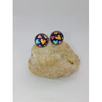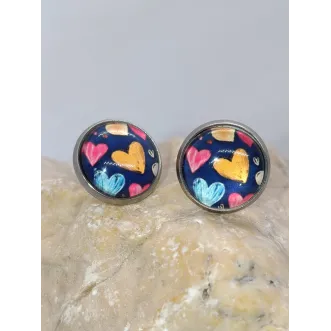 Exprima-ți latura veselă și plină de iubire cu cerceii "Colorful Hearts" de la Clickitshop! Acest model tip cabochon surprinde printr-un print vibrant pe fundal bleumarin, decorat cu inimi jucăușe în nuanțe de roz, galben și albastru. Este accesoriul perfect pentru a aduce un plus de culoare și optimism oricărei zile. Realizați din inox argintiu (oțel inoxidabil) de înaltă calitate, acești cercei de 1 cm sunt proiectați să fie la fel de durabili pe cât sunt de frumoși. Suprafața bombată (glass cabochon) protejează modelul grafic și îi oferă o profunzime aparte, reflectând lumina într-un mod delicat. De ce să alegi cerceii...