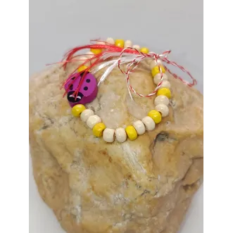 Adu strălucirea soarelui în dar de 1 Martie! Această variantă a brățării de mărțișor pentru copii este creată manual dintr-o combinație luminoasă de mărgele de lemn galben intens și crem natural, evocând primele zile calde de primăvară. Elementul central, un charm gărgăriță din lemn pictat în nuanțe contrastante de roz, violet sau alb, transformă această bijuterie într-un simbol al norocului pe care copiii îl vor purta cu mare drag. Proiectată special pentru încheieturile mici, brățara are o dimensiune de 12-14 cm și este montată pe un fir elastic de calitate superioară, fiind rezistentă și ușor de utilizat fără ajutorul...
