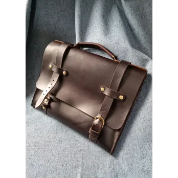 Geantă tip servietă, realizată manual din piele naturală de calitate superioară, cu un design clasic și elegant, potrivit atât pentru birou, cât și pentru utilizare zilnică. Pielea groasă, cu finisaj mat, oferă rezistență și un aspect atemporal, care se îmbunătățește odată cu trecerea timpului. Interiorul este căptușit cu piele întoarsă, protejând conținutul și oferind un plus de rafinament. Compartimentul principal este generos și permite depozitarea confortabilă a documentelor A4, agendelor, dosarelor și accesoriilor necesare unei zile de lucru. Dimensiunea este potrivită și pentru un laptop de până la 14”, fără a încărca vizual...