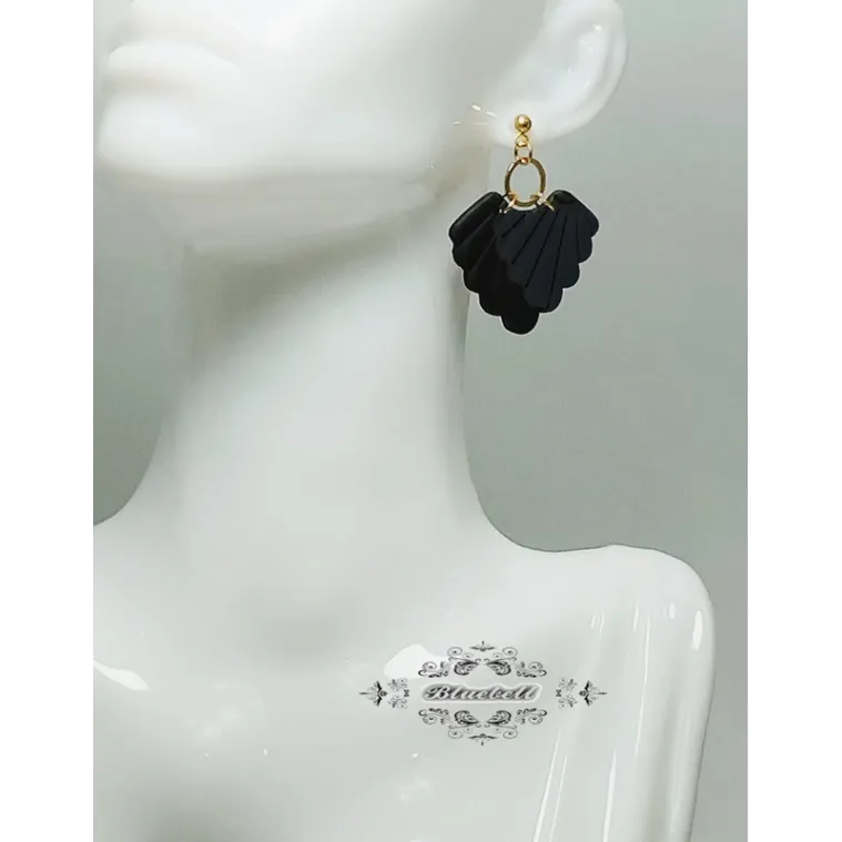 Cercei lucrați manual din lut polimeric, cu elemente metalice aurii din oțel inoxidabil.