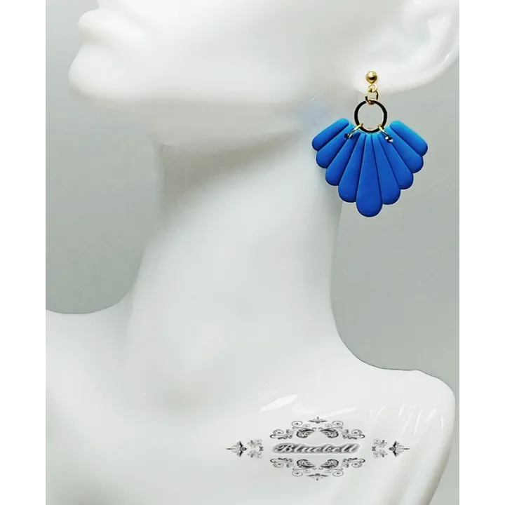 Cercei lucrați manual din lut polimeric, cu elemente metalice aurii din oțel inoxidabil.
