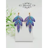 Cercei lucrati manual din lut polimeric si rășină, cu elemente metalice aurii din oțel inoxidabil.