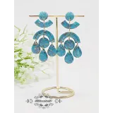 Cercei lucrati manual din lut polimeric si rășină, cu elemente metalice aurii din oțel inoxidabil.