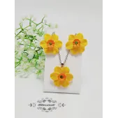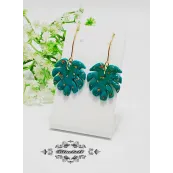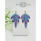 Cercei lungi cu flori, lucrați manual din lut polimeric și elemente metalice argintii din oțel inoxidabil.