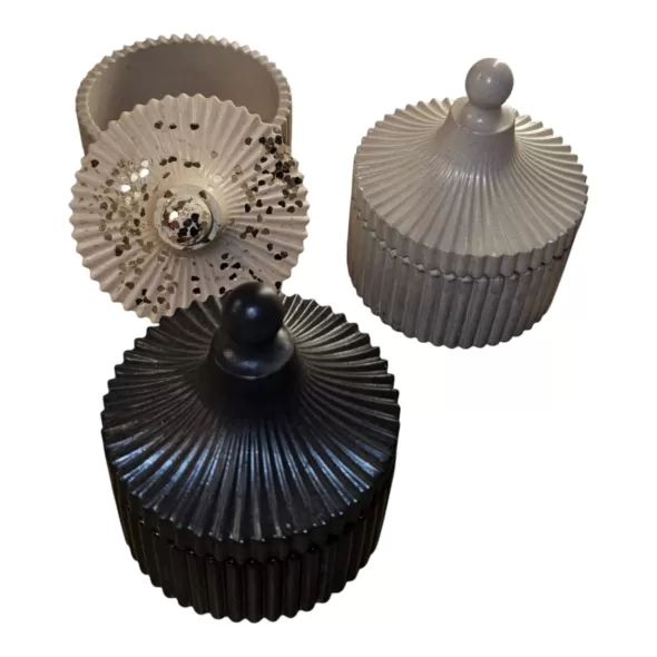 Bol cu capac decorativ, din ceramica, turnat manual, sigilat cu lac waterproof.