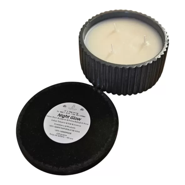 Lumanare parfumata din 100% ceara naturala de soia, in bol din ceramica cu capac handmade*, sigilat cu lac special pentru utilizare in fabricarea lumanarilor.