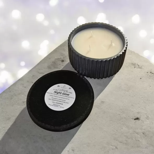 *Vasul din ceramica este realizat manual si poate fi personalizat, la cerere, in culori precum rosu, albastru, verde, alb, galben, portocaliu, negru, maro si nuante derivate. Timpul de realizare a recipientului este de aproximativ 5 zile (turnare, uscare, slefuire, sigilare waterproof cu minim 2 straturi de lac), la care se adauga timpul de maturare a lumanarii parfumate (recomandat este minim 14 zile).