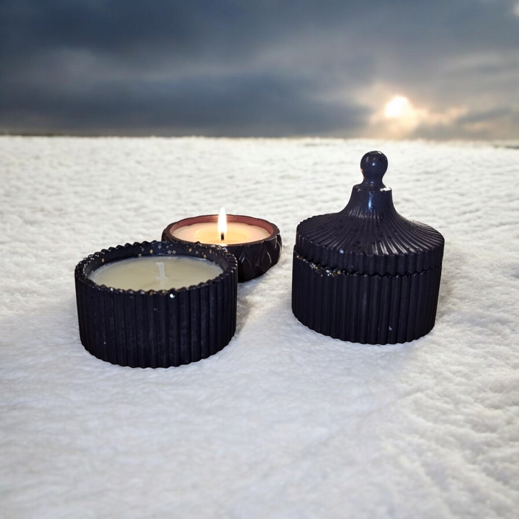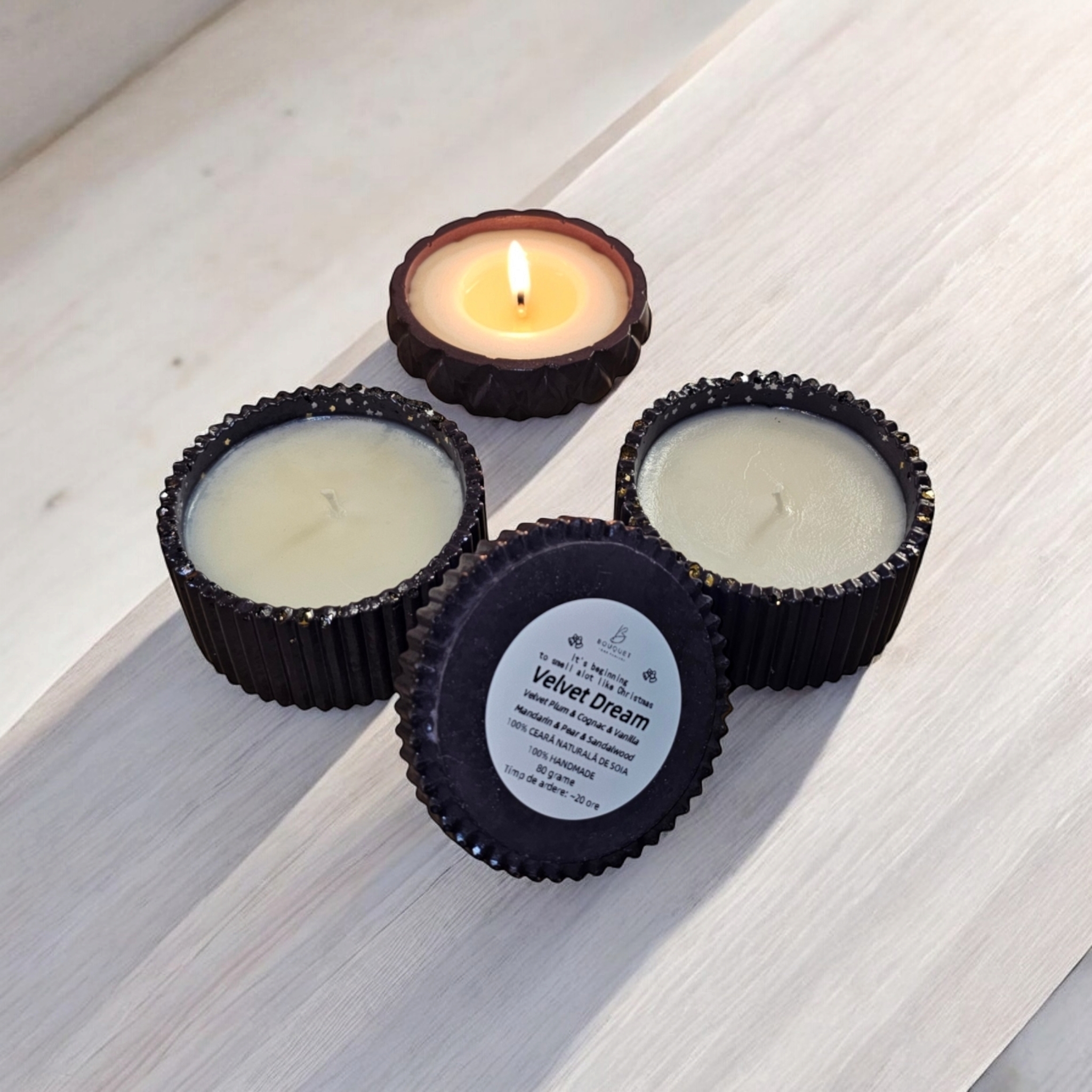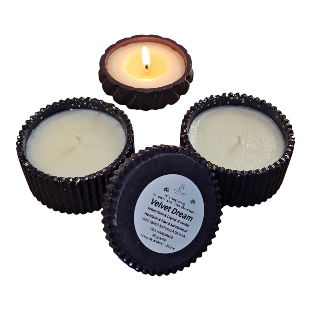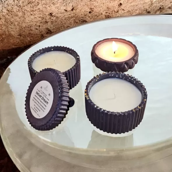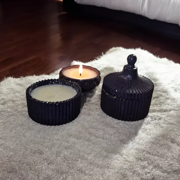Lumanare parfumata din 100% ceara naturala de soia, in bol din ceramica cu capac handmade*, sigilat cu lac special pentru utilizare in fabricarea lumanarilor.