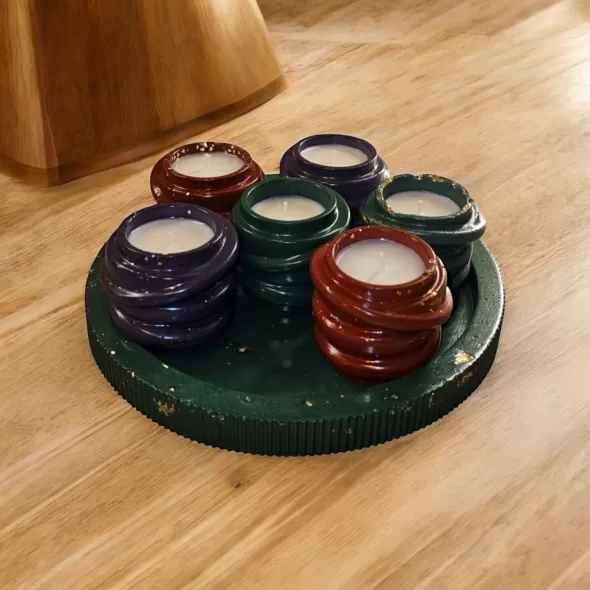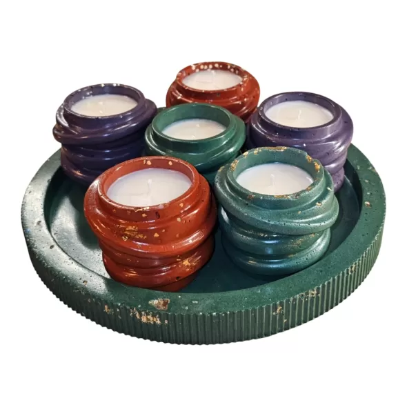 *Vasul din ceramica este realizat manual si poate fi personalizat, la cerere, in culori precum rosu, albastru, verde, alb, galben, portocaliu, negru, maro si nuante derivate. Timpul de realizare a recipientului este de aproximativ 5 zile (turnare, uscare, slefuire, sigilare waterproof cu minim 2 straturi de lac), la care se adauga timpul de maturare a lumanarii parfumate (recomandat este minim 14 zile).