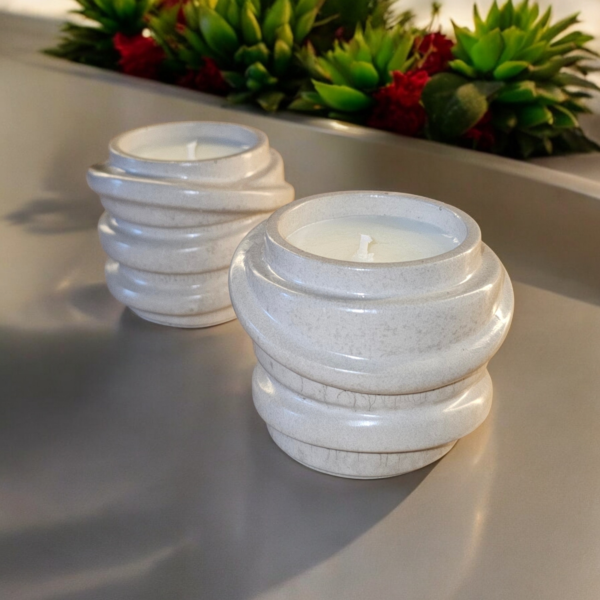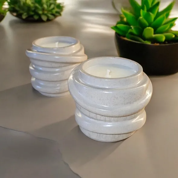 *Vasul din ceramica este realizat manual si poate fi personalizat, la cerere, in culori precum rosu, albastru, verde, alb, galben, portocaliu, negru, maro si nuante derivate. Timpul de realizare a recipientului este de aproximativ 5 zile (turnare, uscare, slefuire, sigilare waterproof cu minim 2 straturi de lac), la care se adauga timpul de maturare a lumanarii parfumate (recomandat este minim 14 zile).