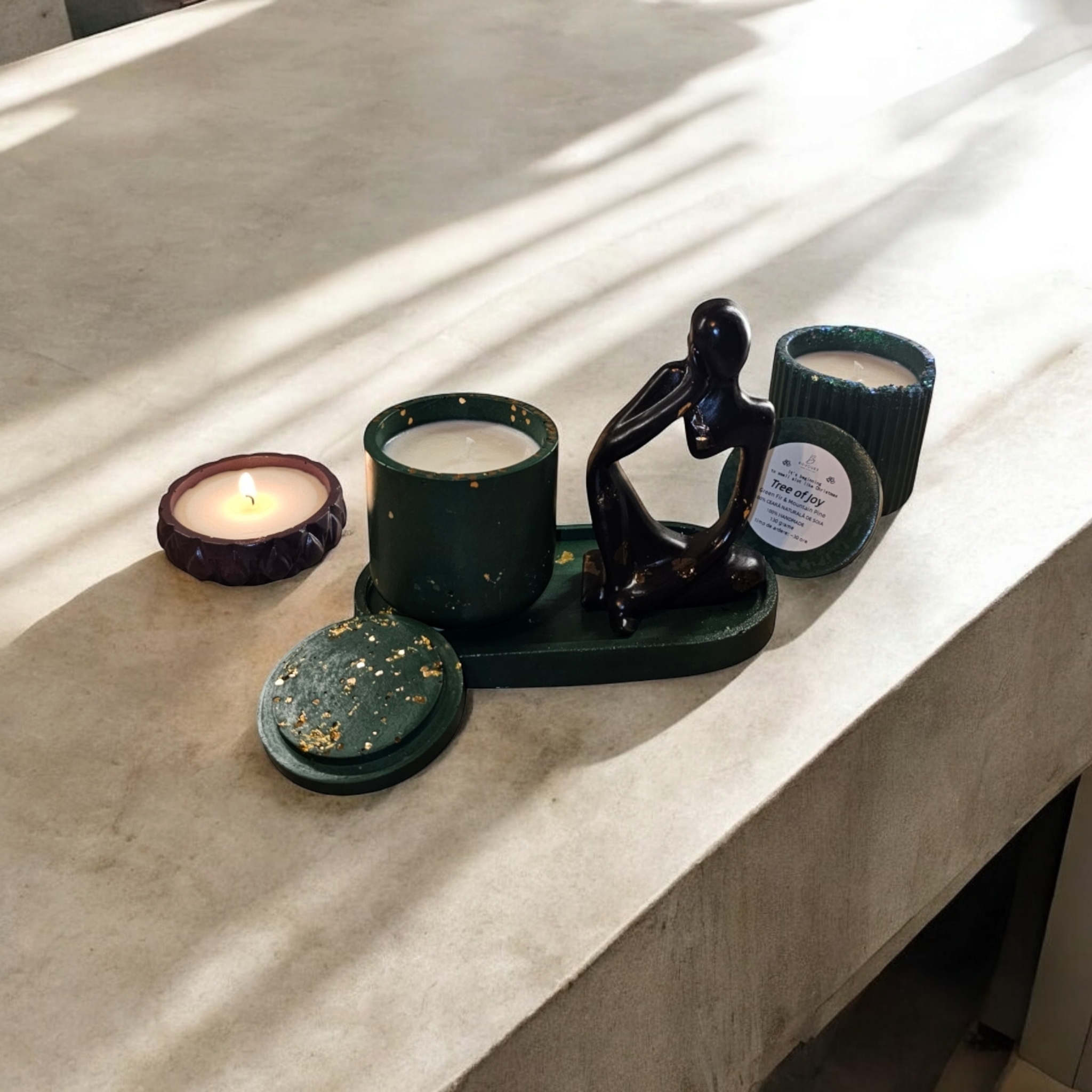 *Vasul din ceramica este realizat manual si poate fi personalizat, la cerere, in culori precum rosu, albastru, verde, alb, galben, portocaliu, negru, maro si nuante derivate. Timpul de realizare a recipientului este de aproximativ 5 zile (turnare, uscare, slefuire, sigilare waterproof cu minim 2 straturi de lac), la care se adauga timpul de maturare a lumanarii parfumate (recomandat este minim 14 zile).