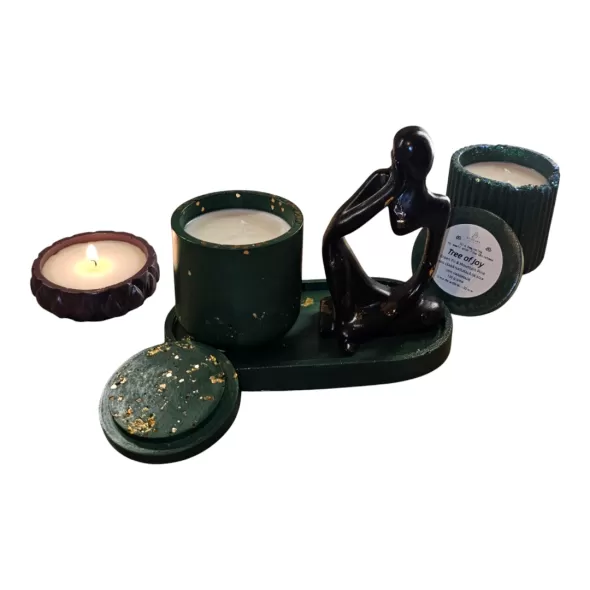 Lumanare parfumata din 100% ceara naturala de soia, in pahar din ceramica cu capac handmade*, sigilat cu lac special pentru utilizare in fabricarea lumanarilor.
