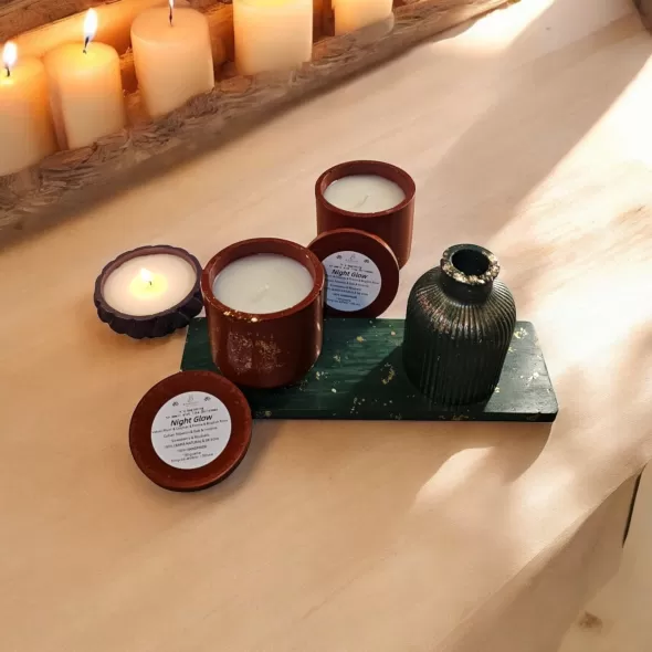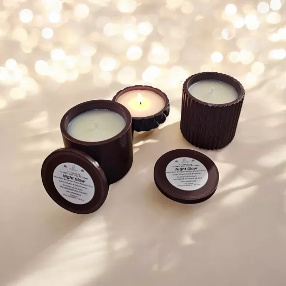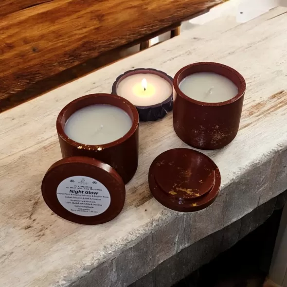 Lumanare parfumata din 100% ceara naturala de soia, in pahar din ceramica cu capac handmade*, sigilat cu lac special pentru utilizare in fabricarea lumanarilor.