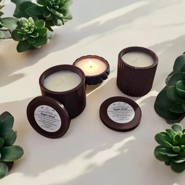 Lumanare parfumata din 100% ceara naturala de soia, in pahar din ceramica handmade cu capac