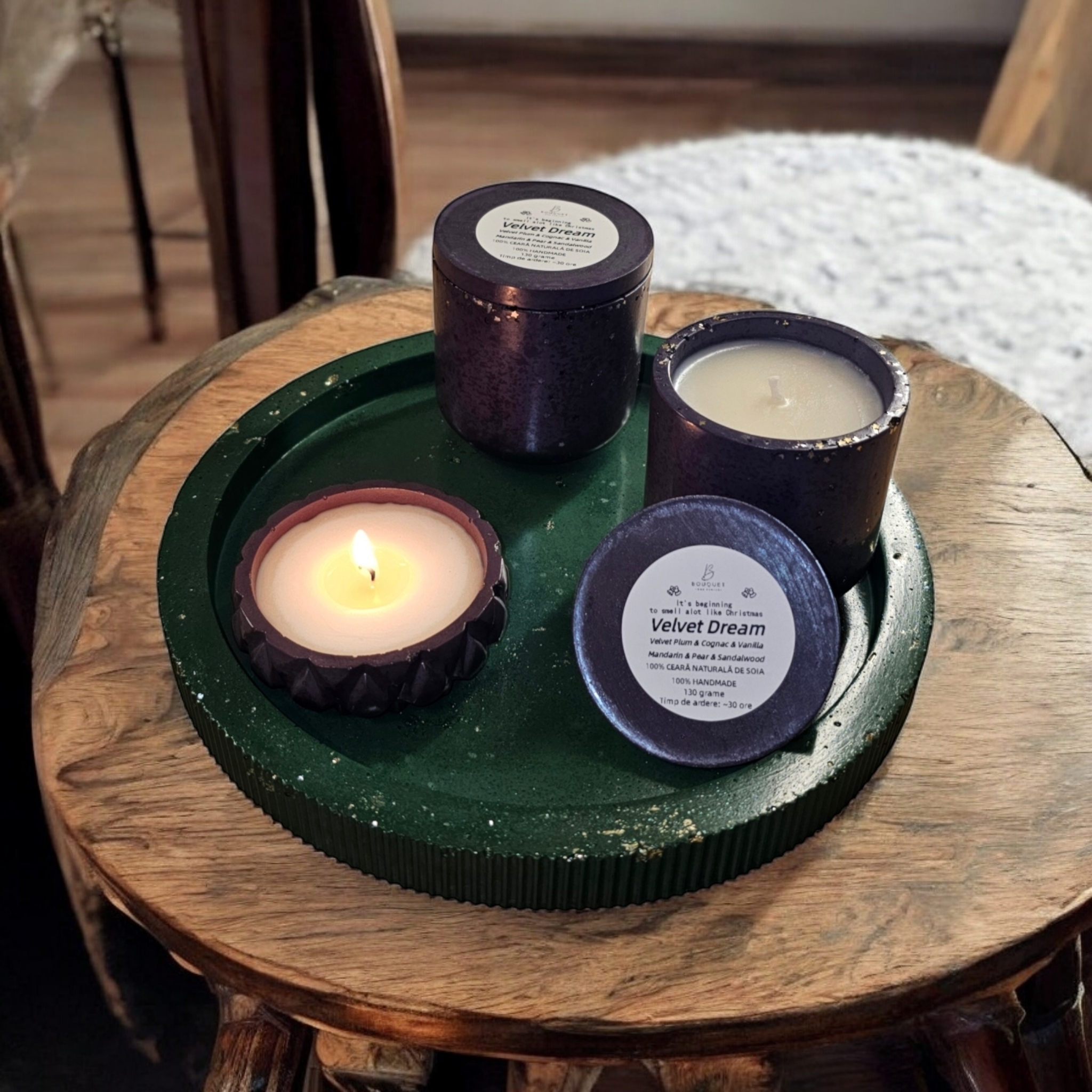 *Vasul din ceramica este realizat manual si poate fi personalizat, la cerere, in culori precum rosu, albastru, verde, alb, galben, portocaliu, negru, maro si nuante derivate. Timpul de realizare a recipientului este de aproximativ 5 zile (turnare, uscare, slefuire, sigilare waterproof cu minim 2 straturi de lac), la care se adauga timpul de maturare a lumanarii parfumate (recomandat este minim 14 zile).