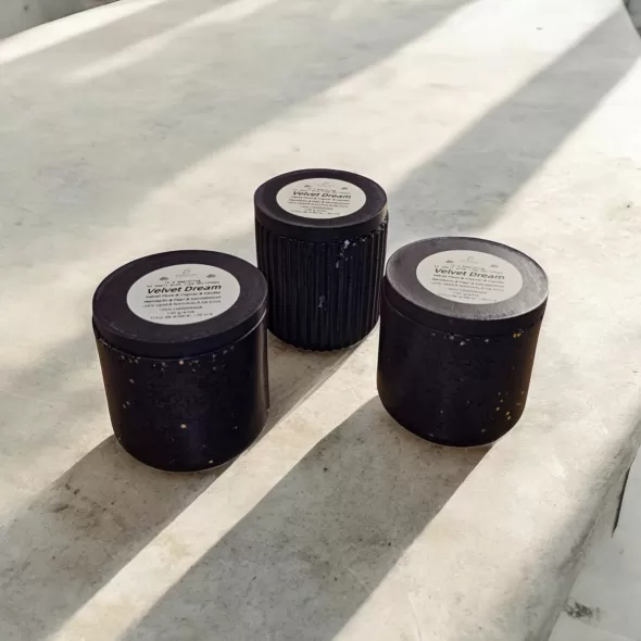 Lumanare parfumata din 100% ceara naturala de soia, in pahar din ceramica handmade cu capac