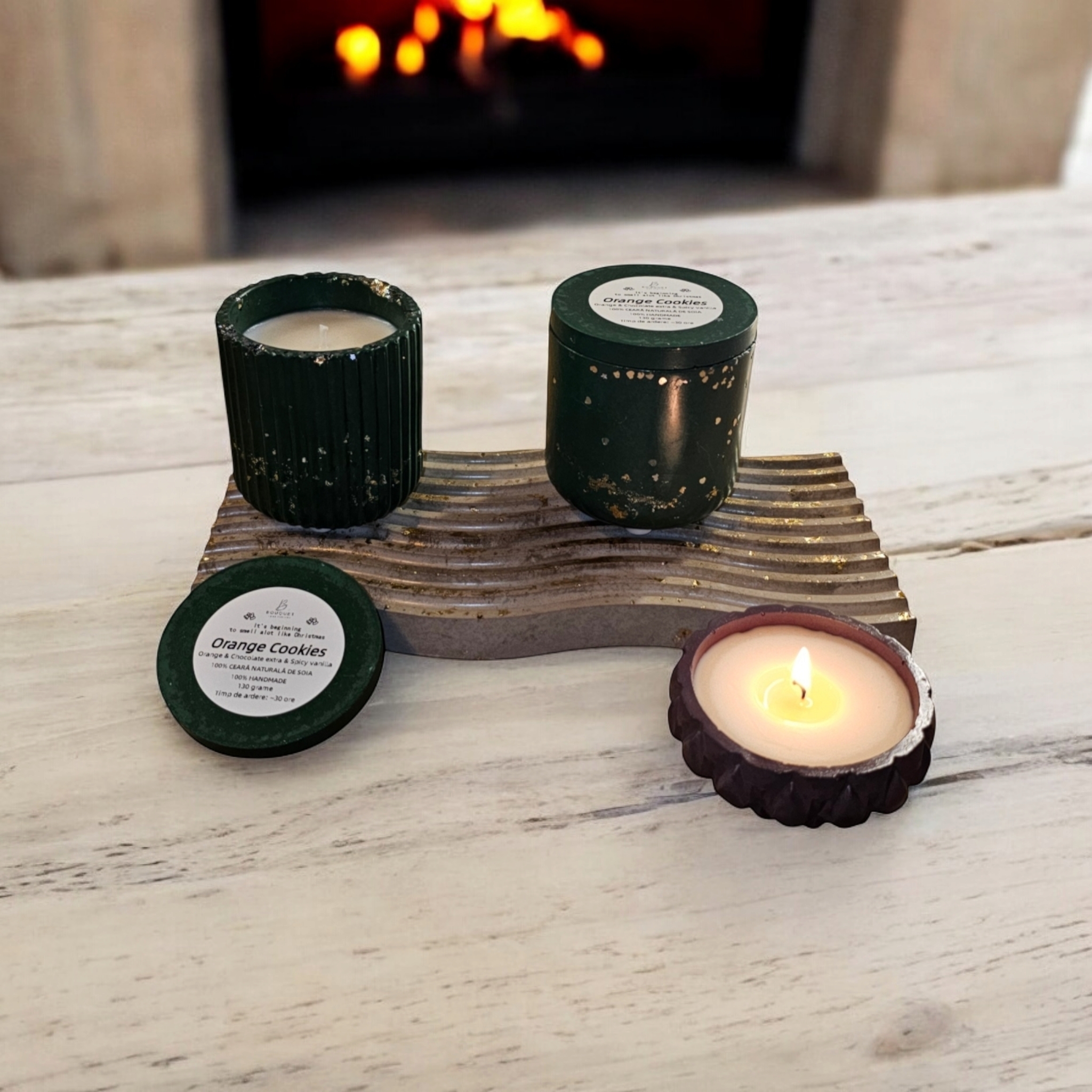 *Vasul din ceramica este realizat manual si poate fi personalizat, la cerere, in culori precum rosu, albastru, verde, alb, galben, portocaliu, negru, maro si nuante derivate. Timpul de realizare a recipientului este de aproximativ 5 zile (turnare, uscare, slefuire, sigilare waterproof cu minim 2 straturi de lac), la care se adauga timpul de maturare a lumanarii parfumate (recomandat este minim 14 zile).