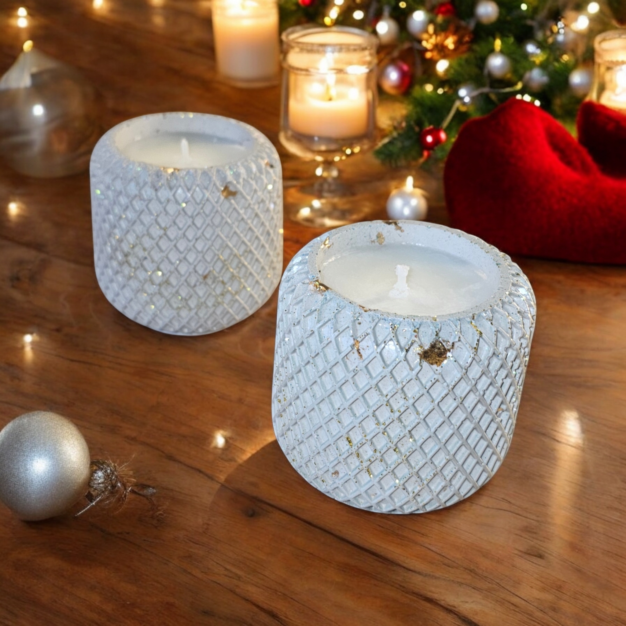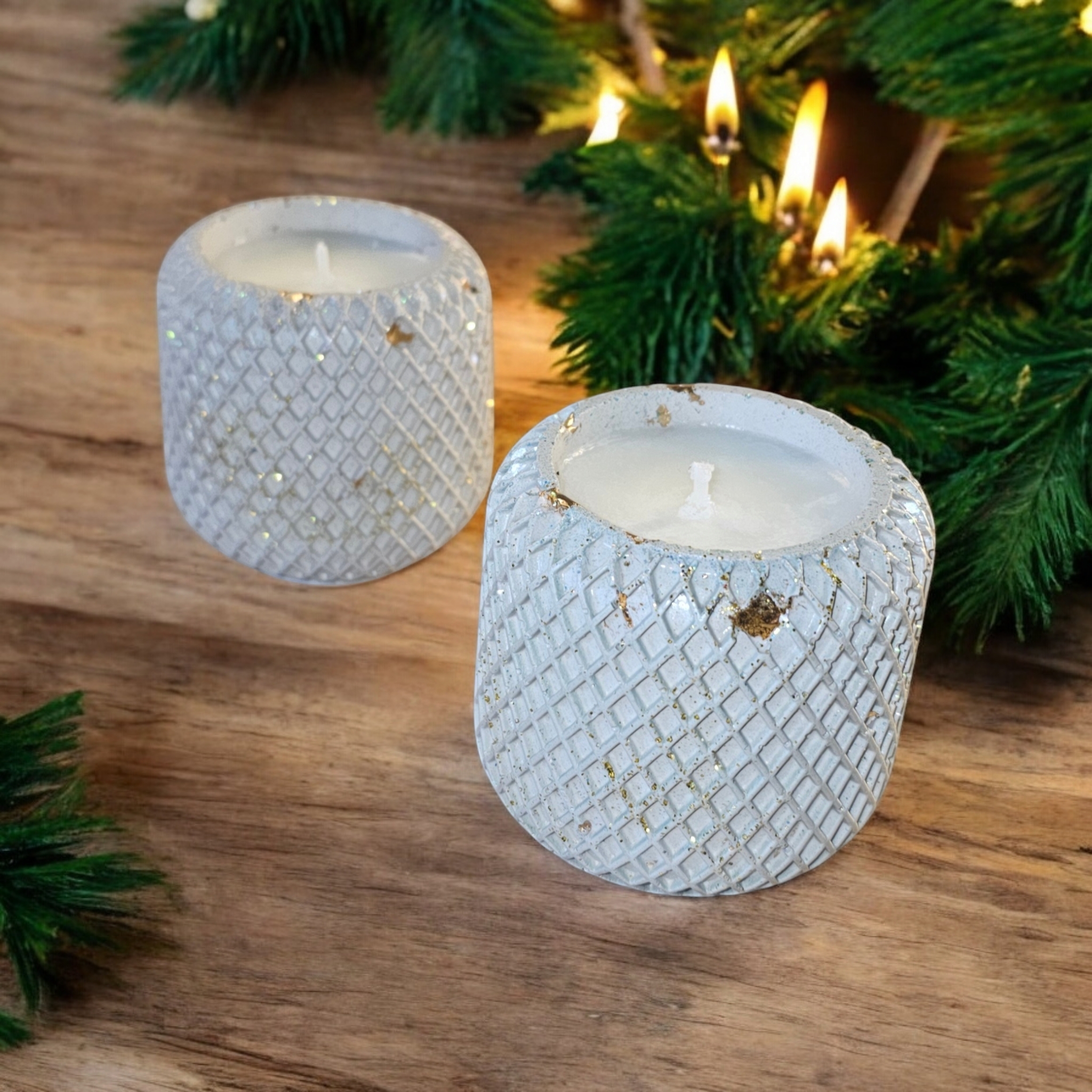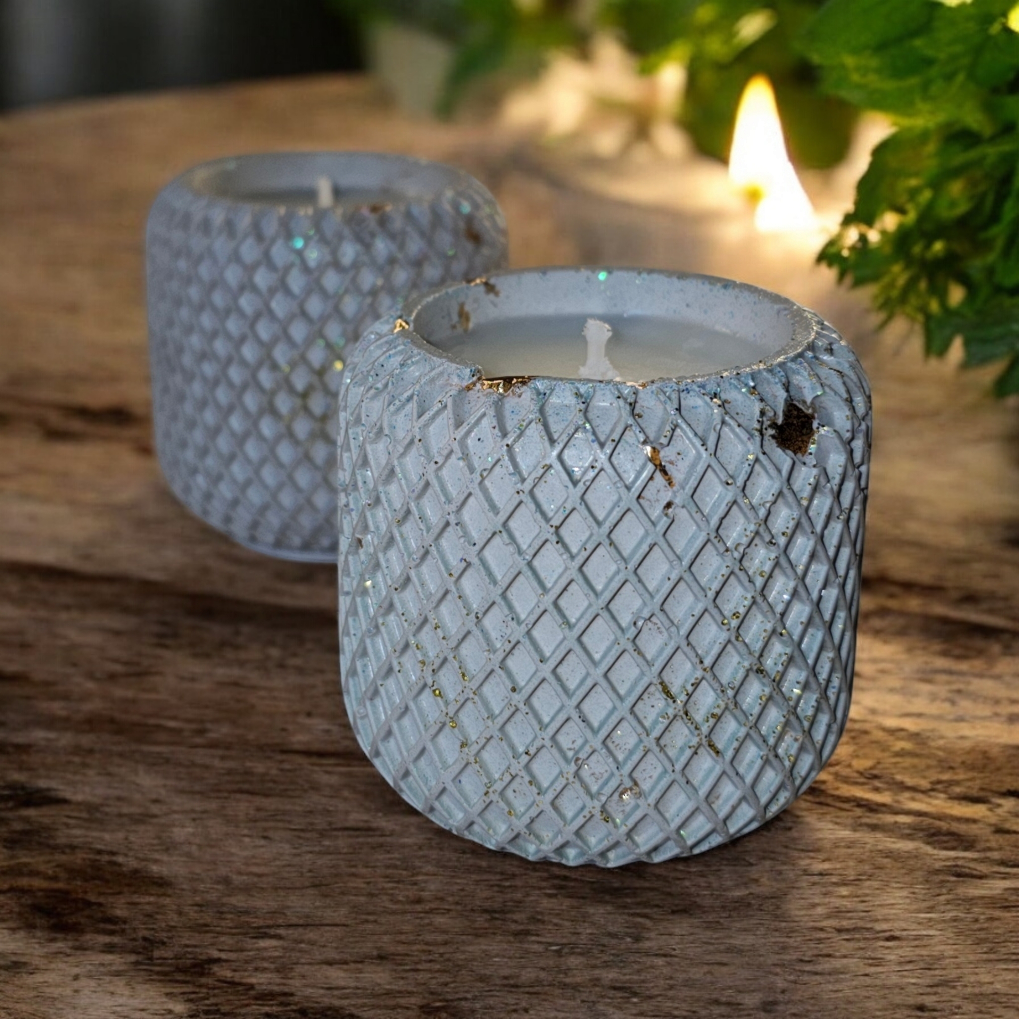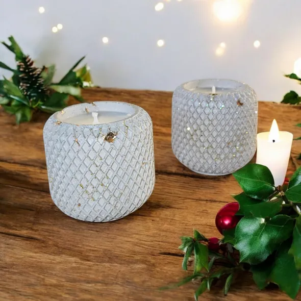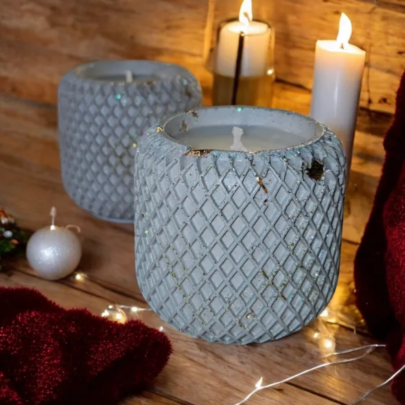 Lumanare parfumata din 100% ceara naturala de soia, in pahar mic cu detalii romburi din ceramica handmade