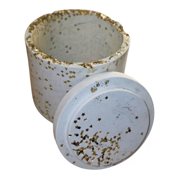 Pahar decorativ din ceramica, turnat manual, cu capac, sigilat cu lac waterproof.