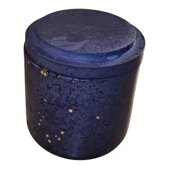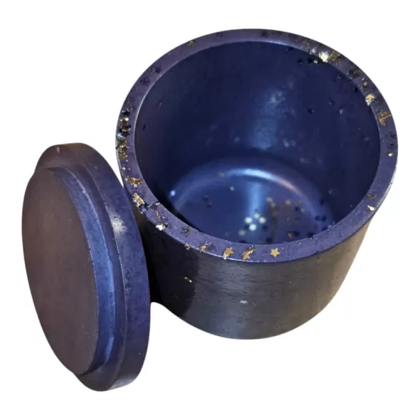 Pahar decorativ din ceramica, turnat manual, cu capac, sigilat cu lac waterproof.