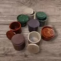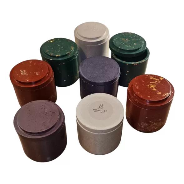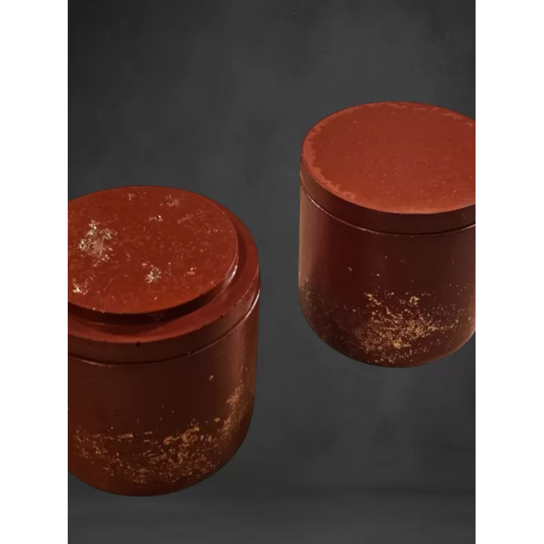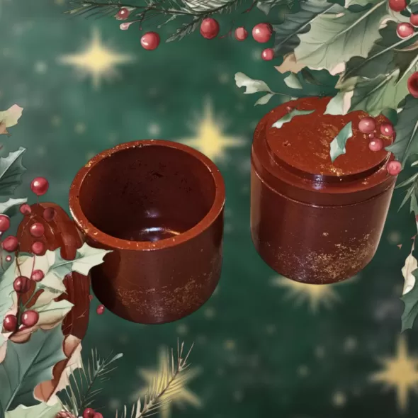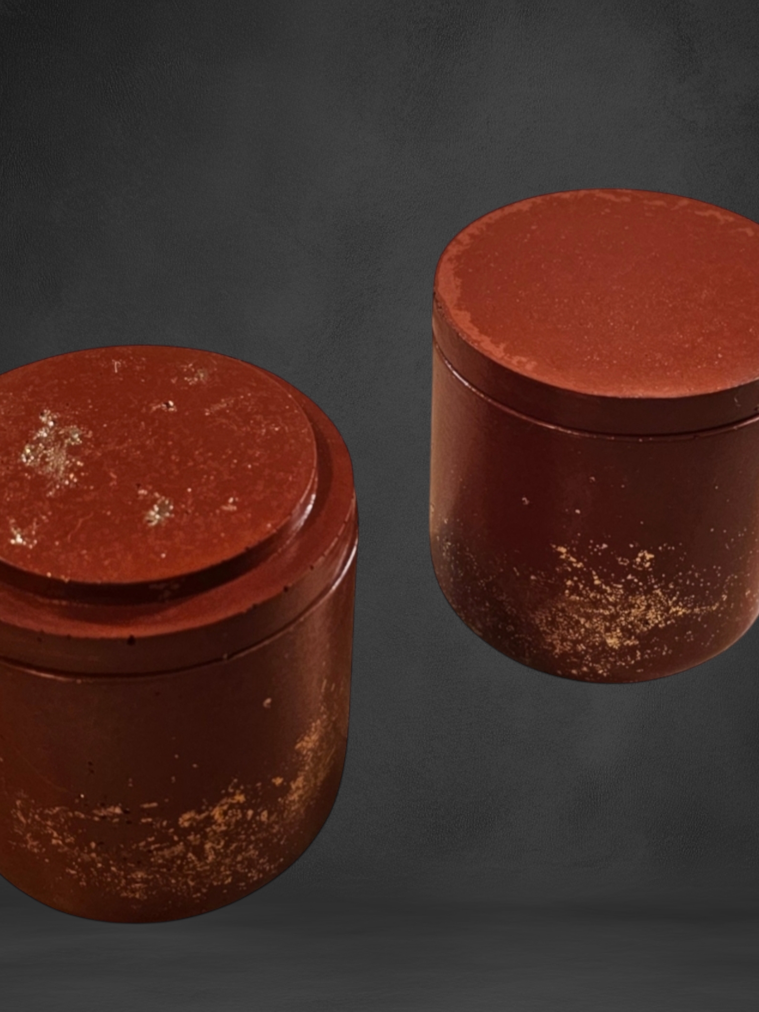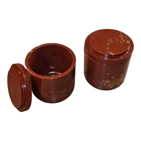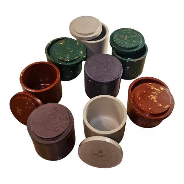Pahar decorativ din ceramica, turnat manual, cu capac, sigilat cu lac waterproof.