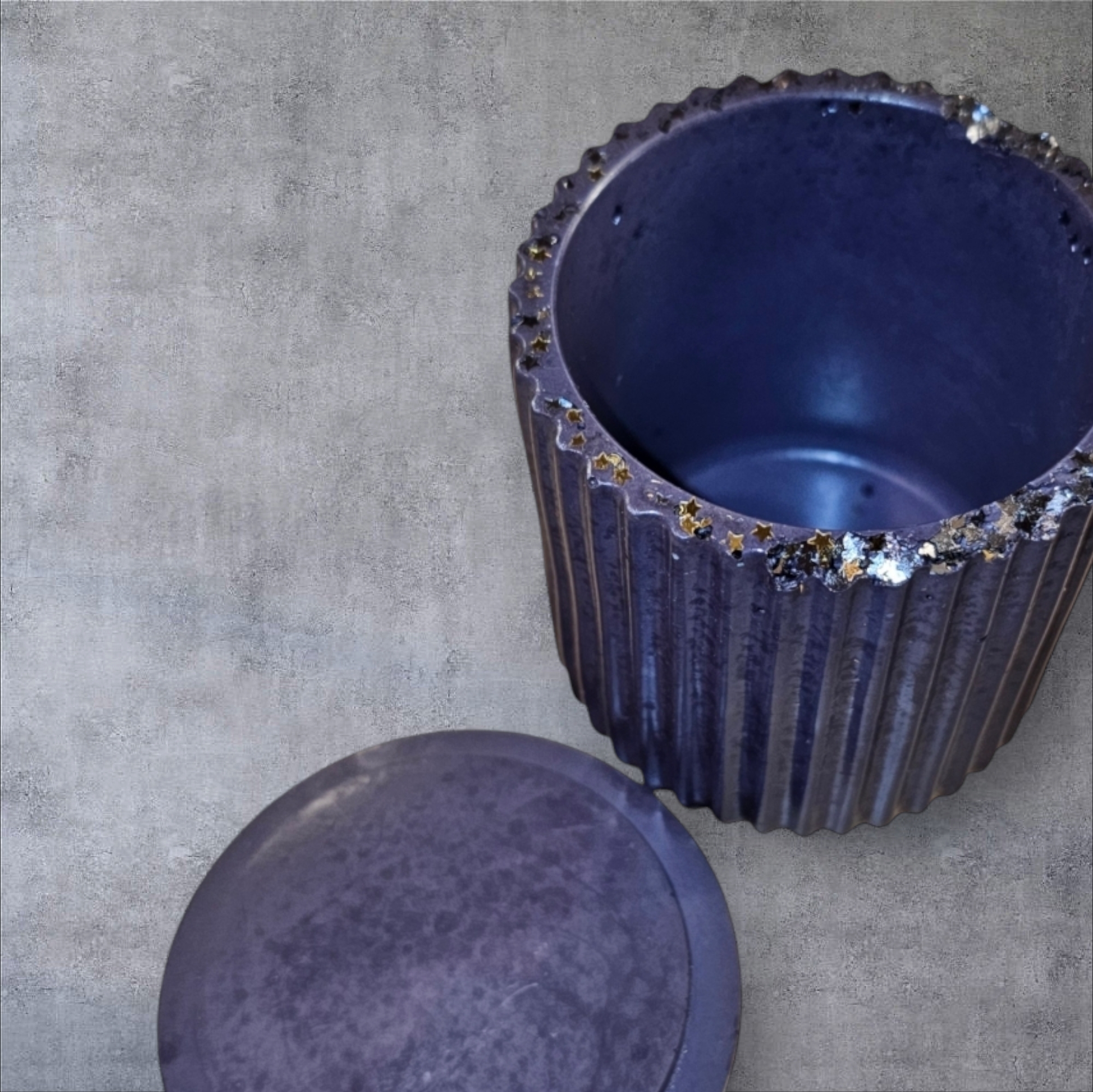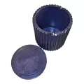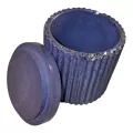 Pahar decorativ din ceramica, cu detalii striate la exterior, turnat manual, cu capac, sigilat cu lac waterproof.