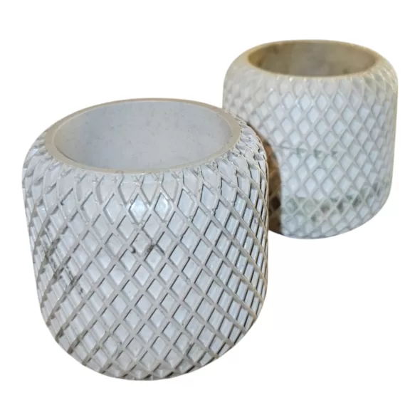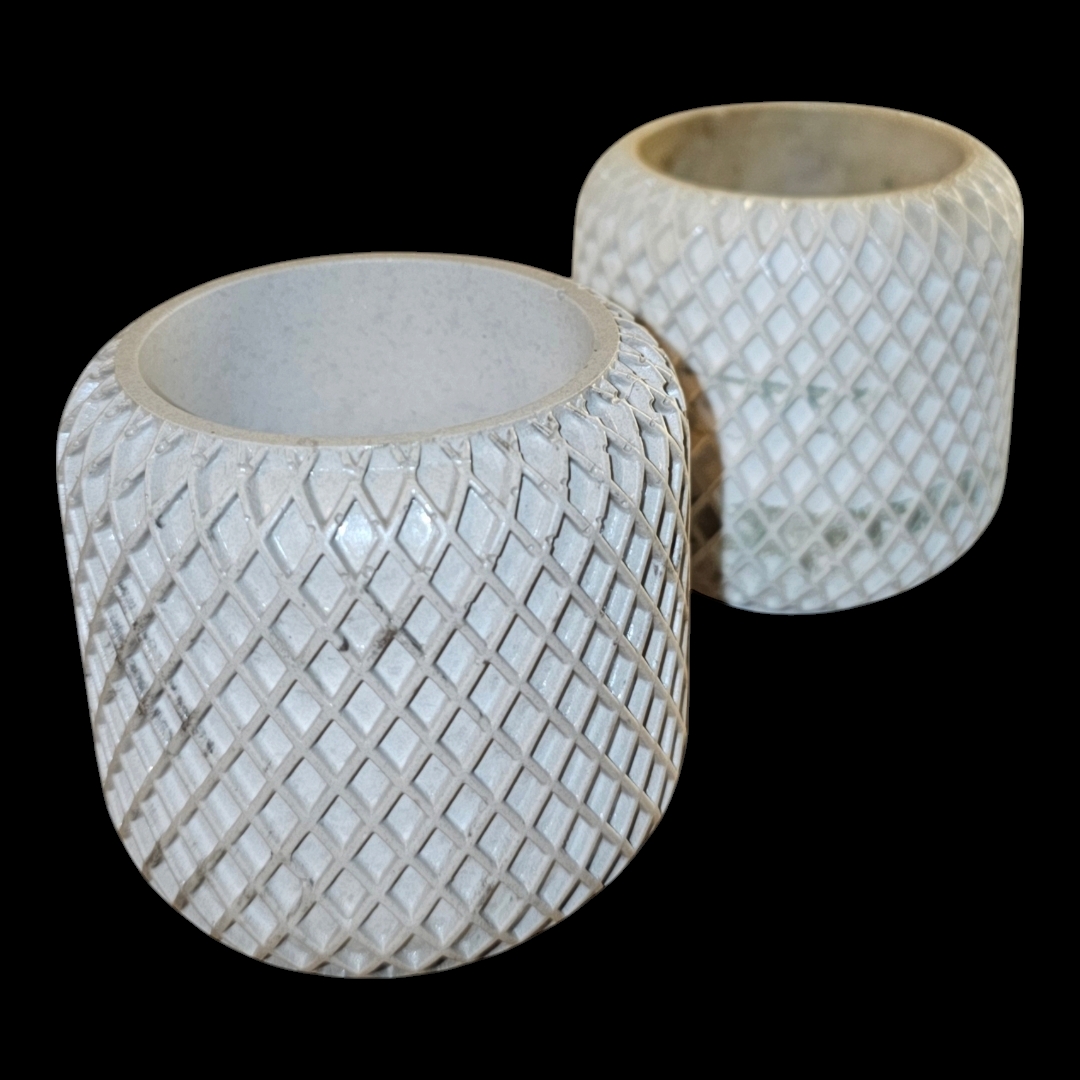 Pahar decorativ din ceramica, turnat manual, cu detalii romburi, sigilat cu lac waterproof.