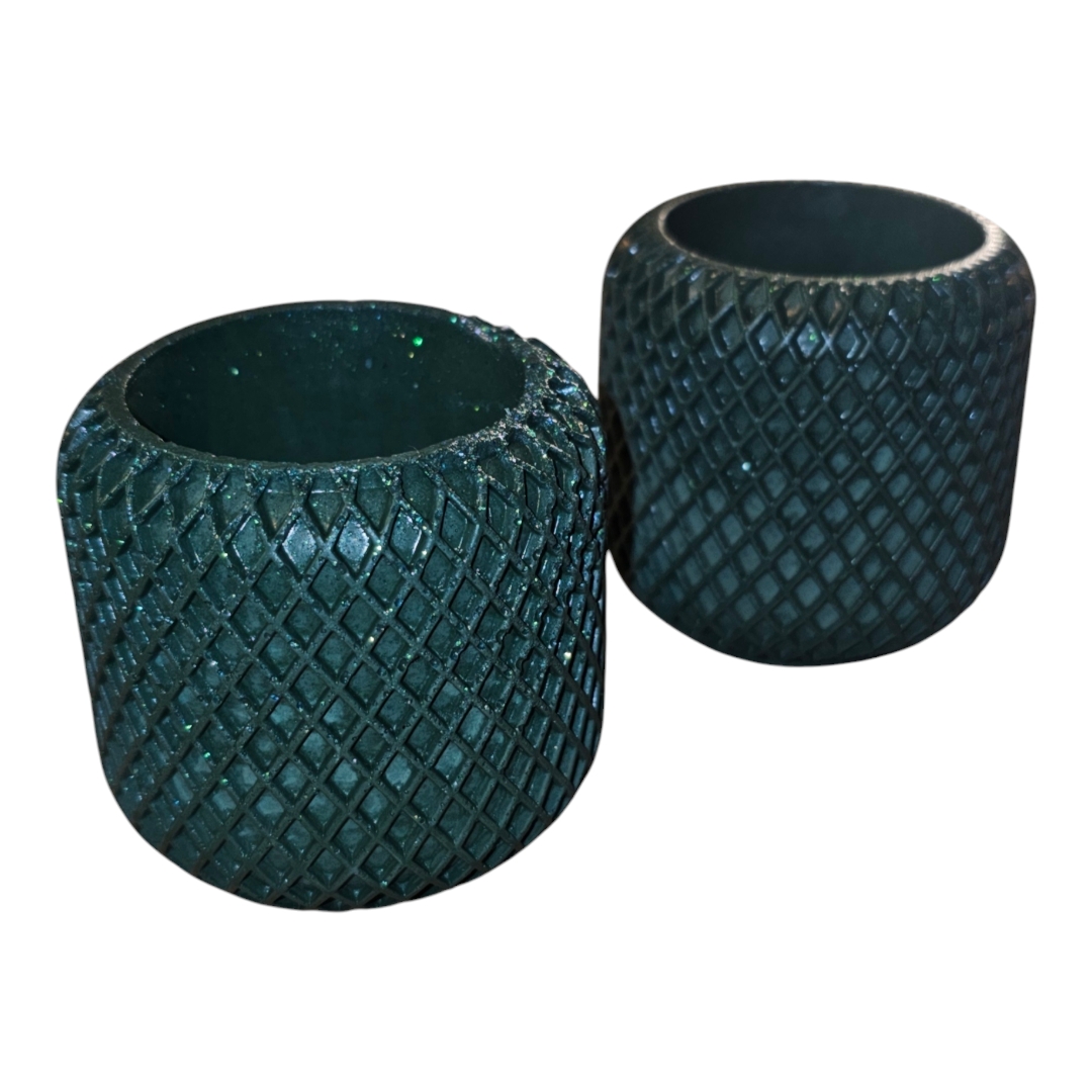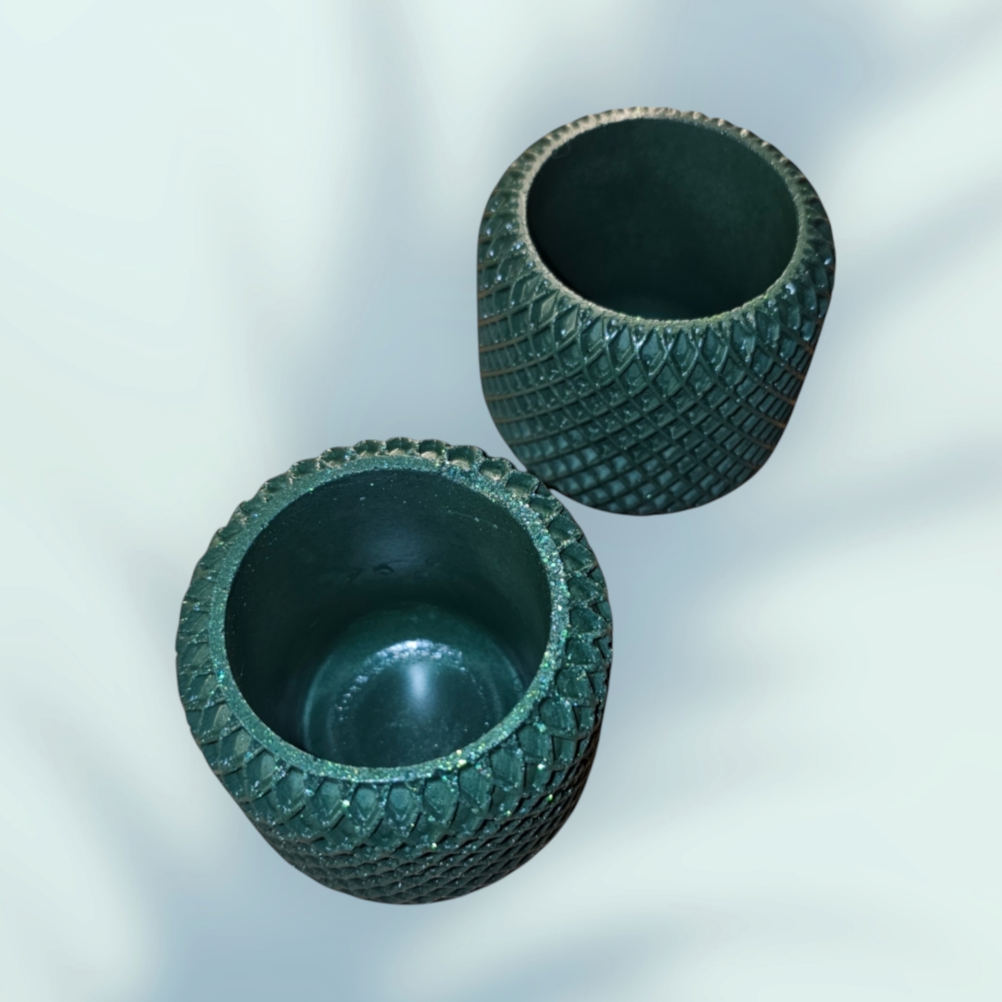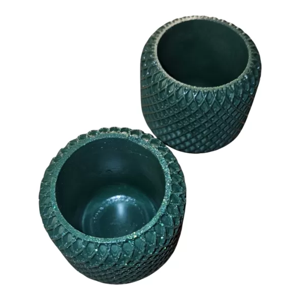 Pahar decorativ din ceramica, turnat manual, cu detalii romburi, sigilat cu lac waterproof.