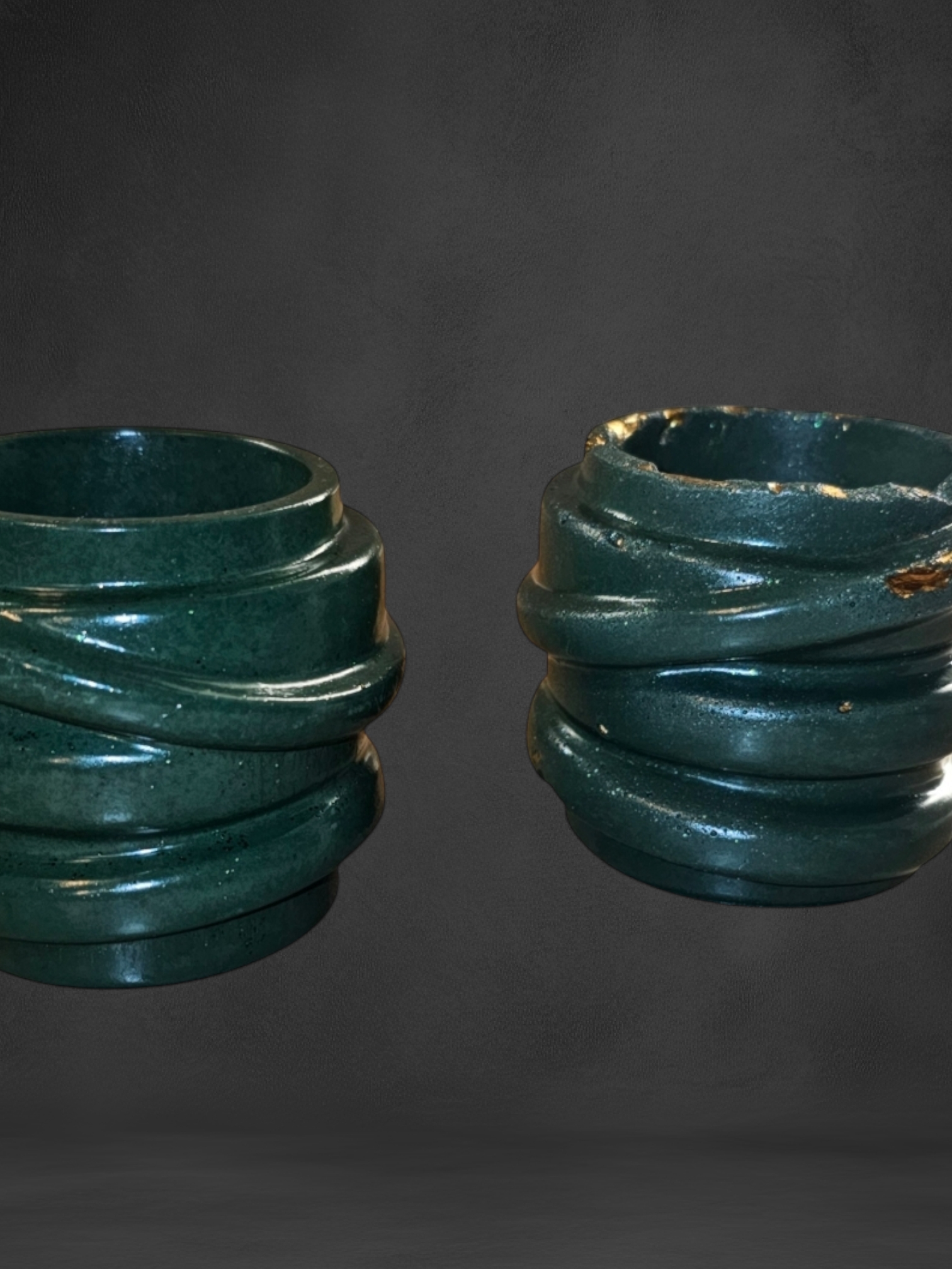 Pahar decorativ din ceramica, turnat manual, sigilat cu lac waterproof.