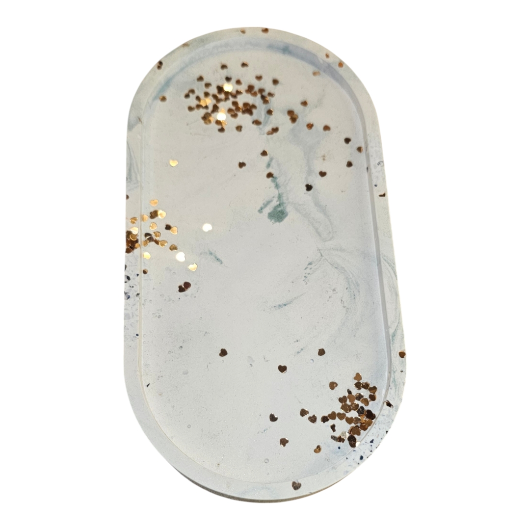 Tavita decorativa din ceramica, turnata manual, sigilata cu lac waterproof.