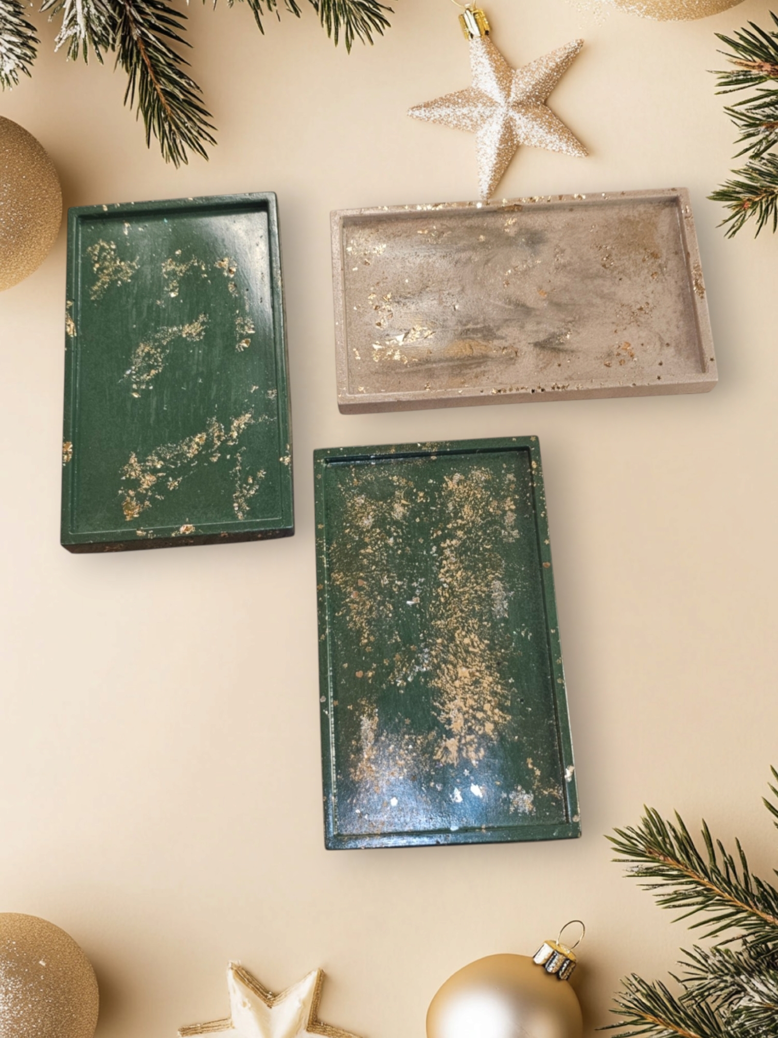 Tavita dreptunghiulara decorativa din ceramica, turnata manual, sigilata cu lac waterproof.