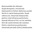 Ingrediente: apa distilata, baza Augeo (non-toxica la inhalare, neinflamabila, fabricata din resurse regenerabile, nu petrochimice), uleiuri de parfum certificate IFRA si uleiuri esentiale.