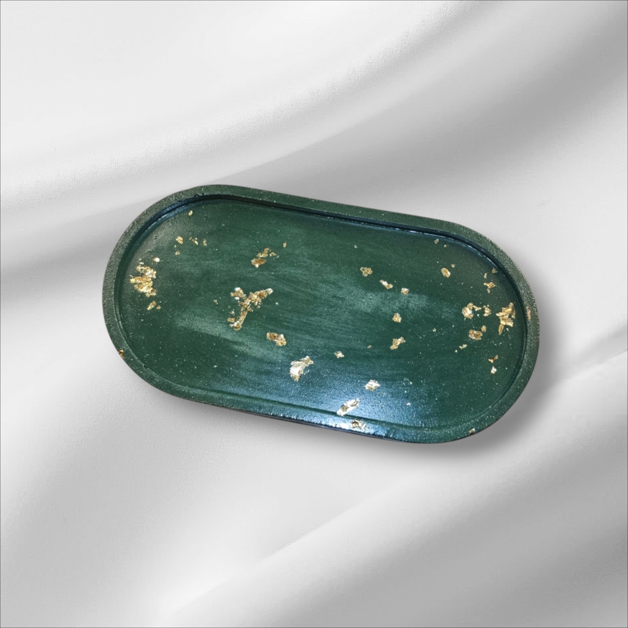 * 1 x Tavita decorativa dreptunghiulara verde cu detalii aurii din ceramica handmade