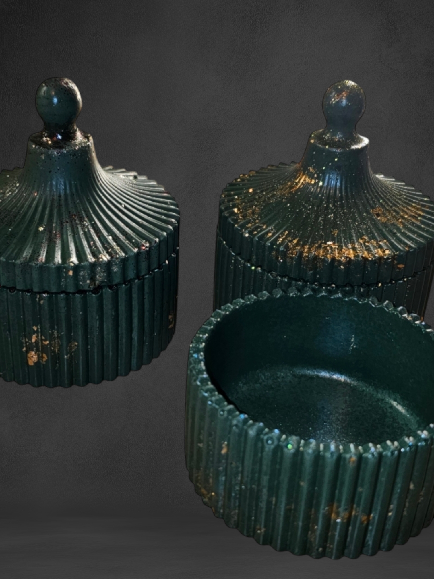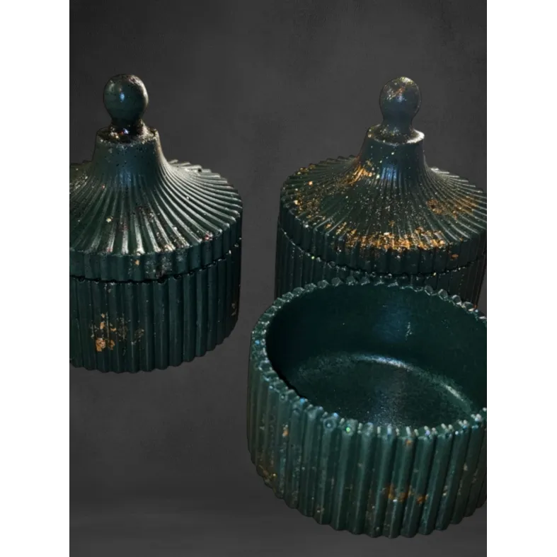 * 1 x Bol mic cu capac decorativ verde cu detalii aurii, din ceramica handmade