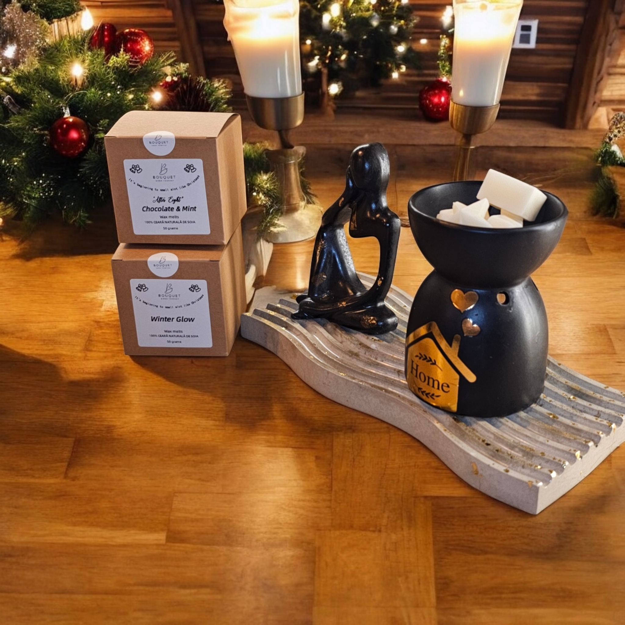 * 1 x Arzator negru pentru pastile parfumate din ceara (wax melts)