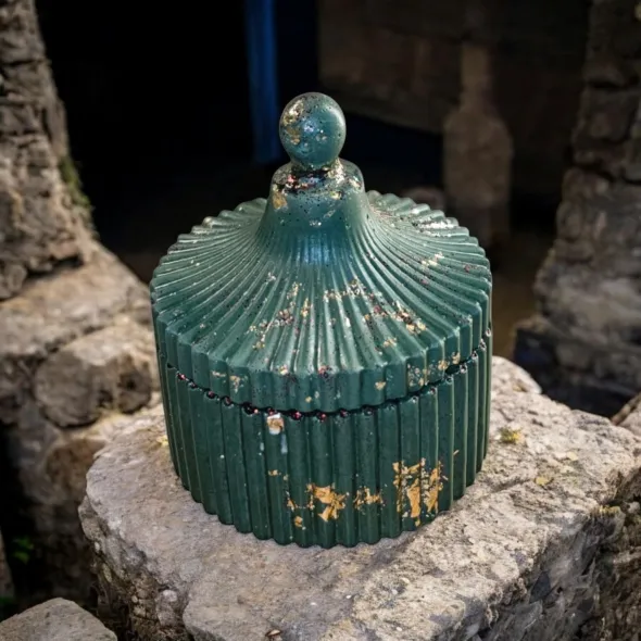 * 1 x Lumanare parfumata in bol mic din ceramica handmade cu capac, 80 grame (parfum la alegere din cele de mai jos, pe care il veti mentiona in casuta "Personalizeaza produsul" )