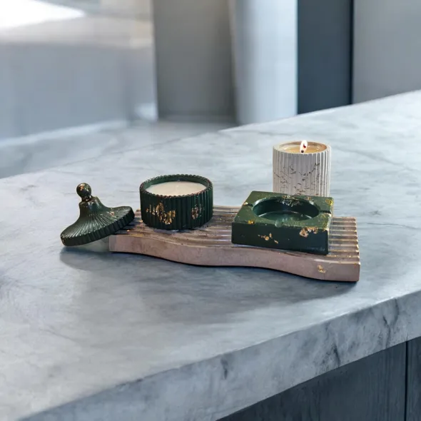 * 1 x Scrumiera eleganta din ceramica handmade, a carei culoare va fi in functie de culoarea recipientului lumanarii, care depinde de parfumul ales (conform imaginilor)