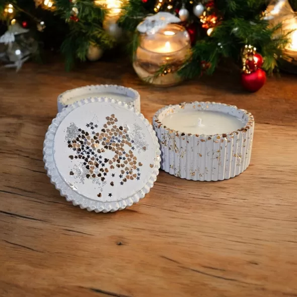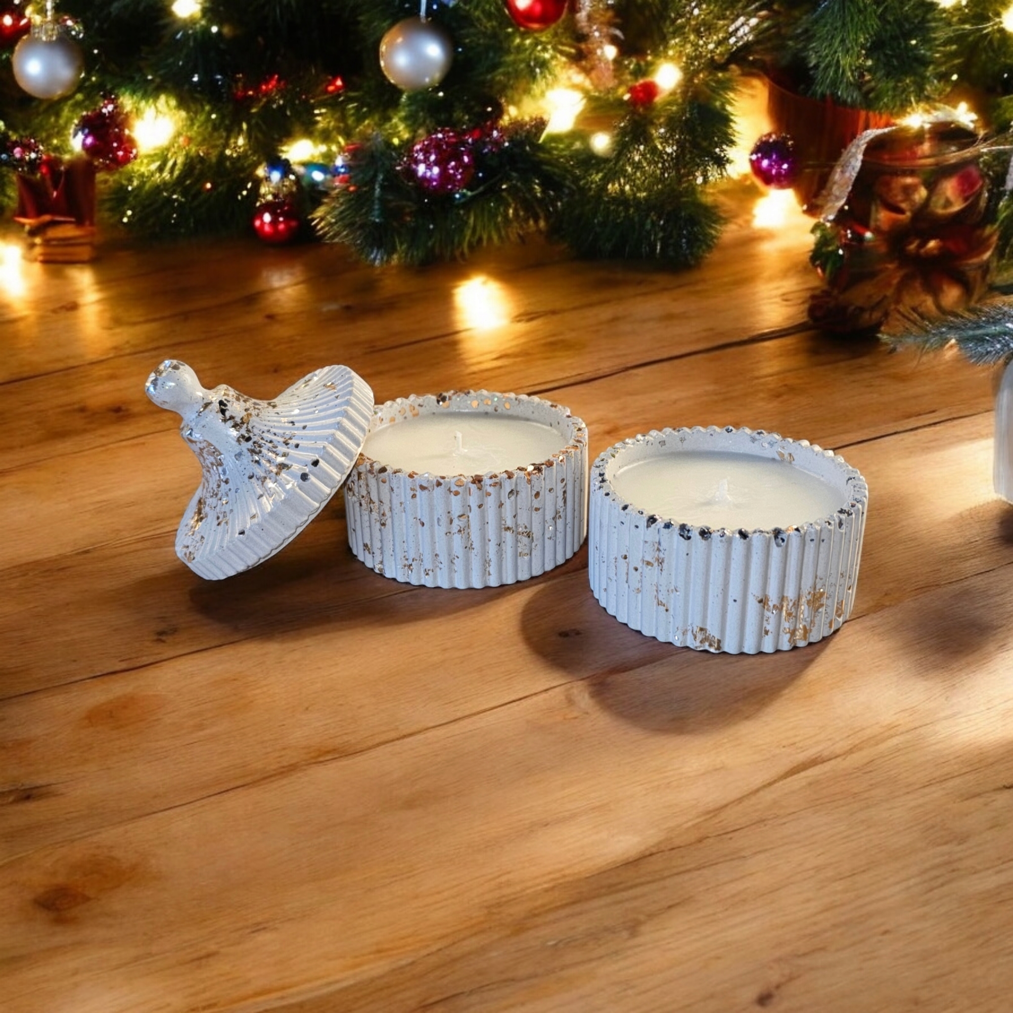 * 1 x Lumanare parfumata in bol mic din ceramica handmade cu capac, 80 grame (parfum la alegere din cele de mai jos, pe care il veti mentiona in casuta "Personalizeaza produsul" )