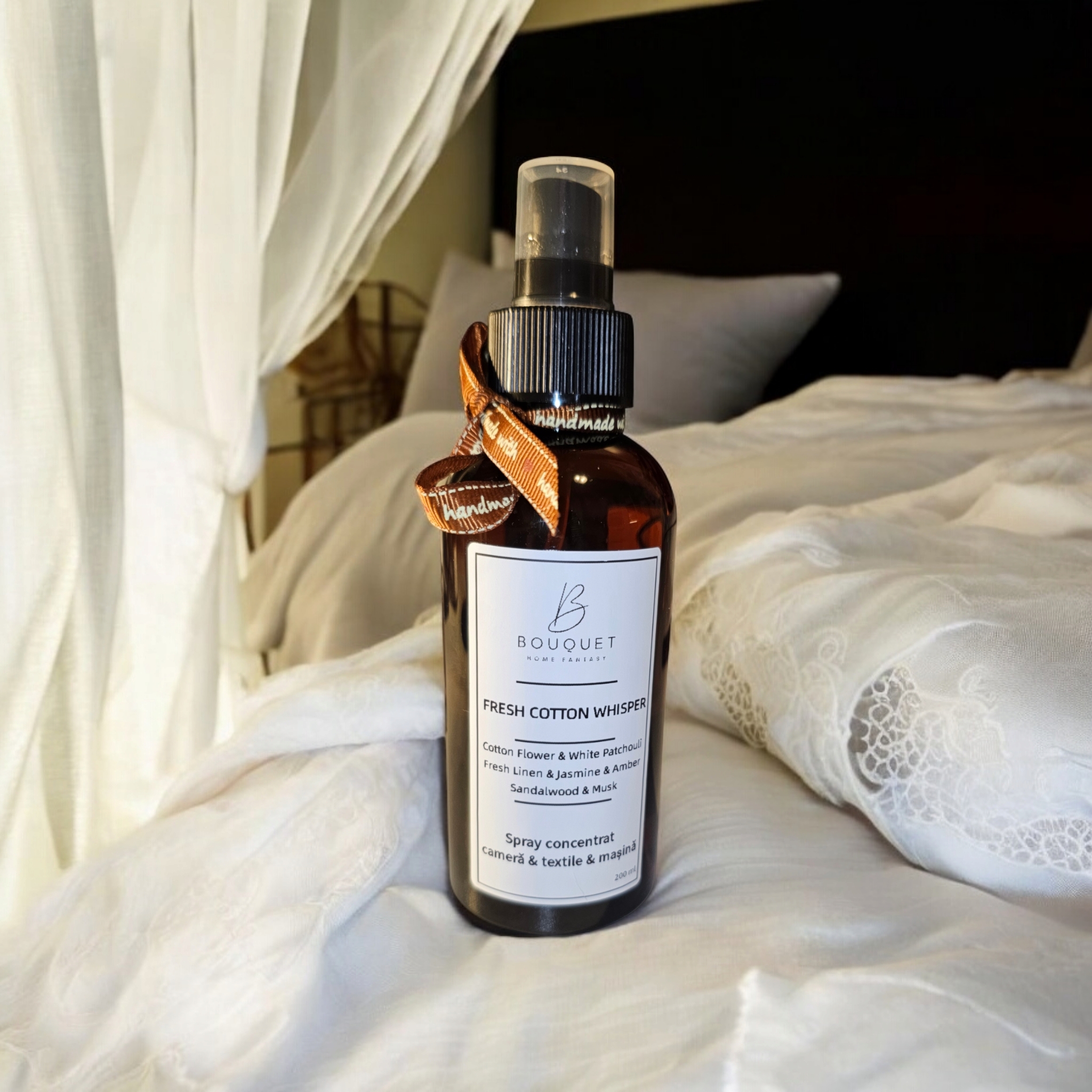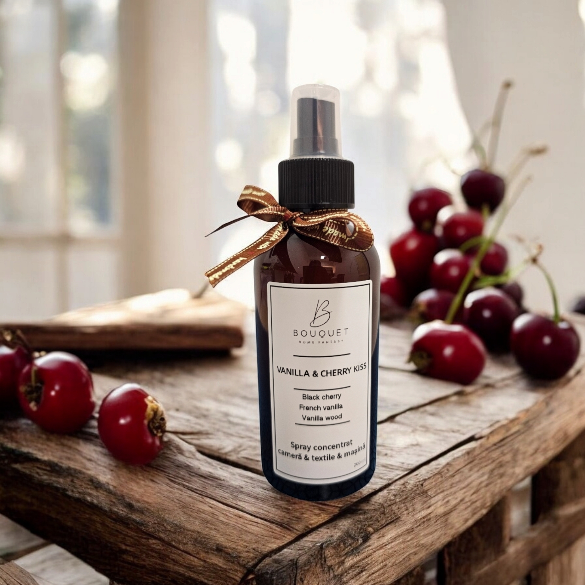 * 1 x Spray concentrat pentru camera, textile si masina, 200 ml (parfum la alegere din cele de mai jos, pe care il veti mentiona in casuta "Personalizeaza produsul" )
