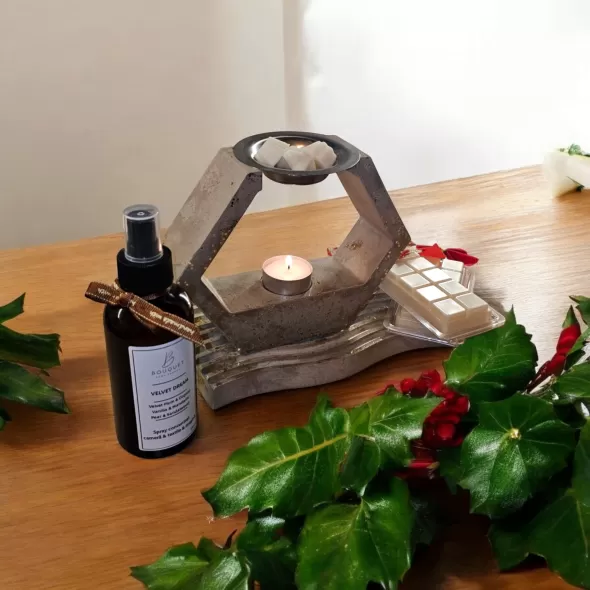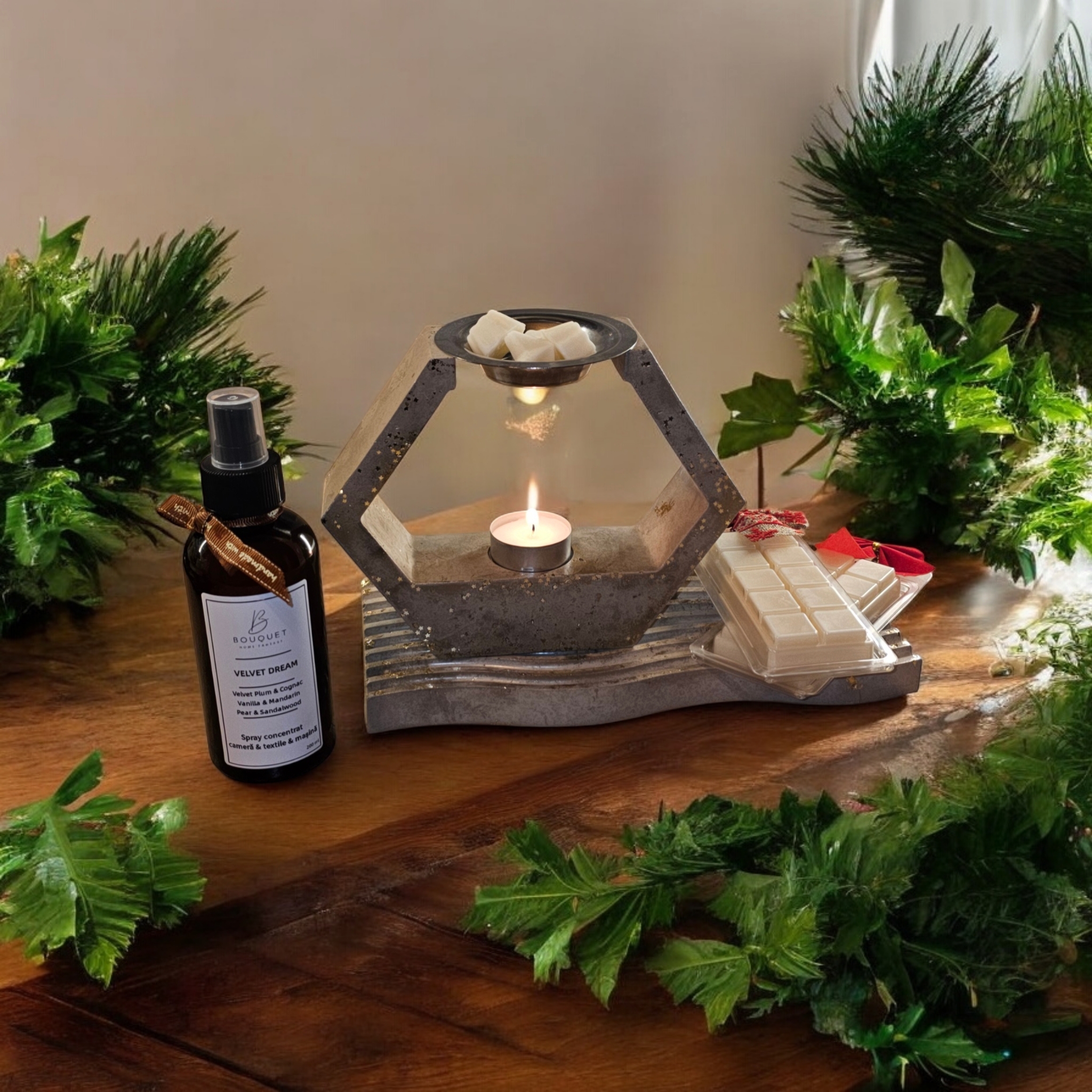 * 2 x 50 grame pastile parfumate (wax melts) tableta cu arome la alegere (parfum la alegere din cele de mai jos, pe care il veti mentiona in casuta "Personalizeaza produsul" )