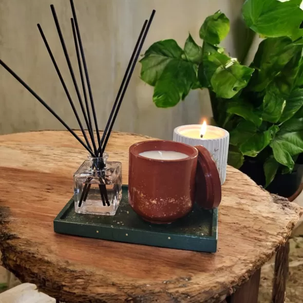 * 1 x Difuzor de parfum cu betisoare, 50 ml (parfum la alegere din cele de mai jos, pe care il veti mentiona in casuta "Personalizeaza produsul")
