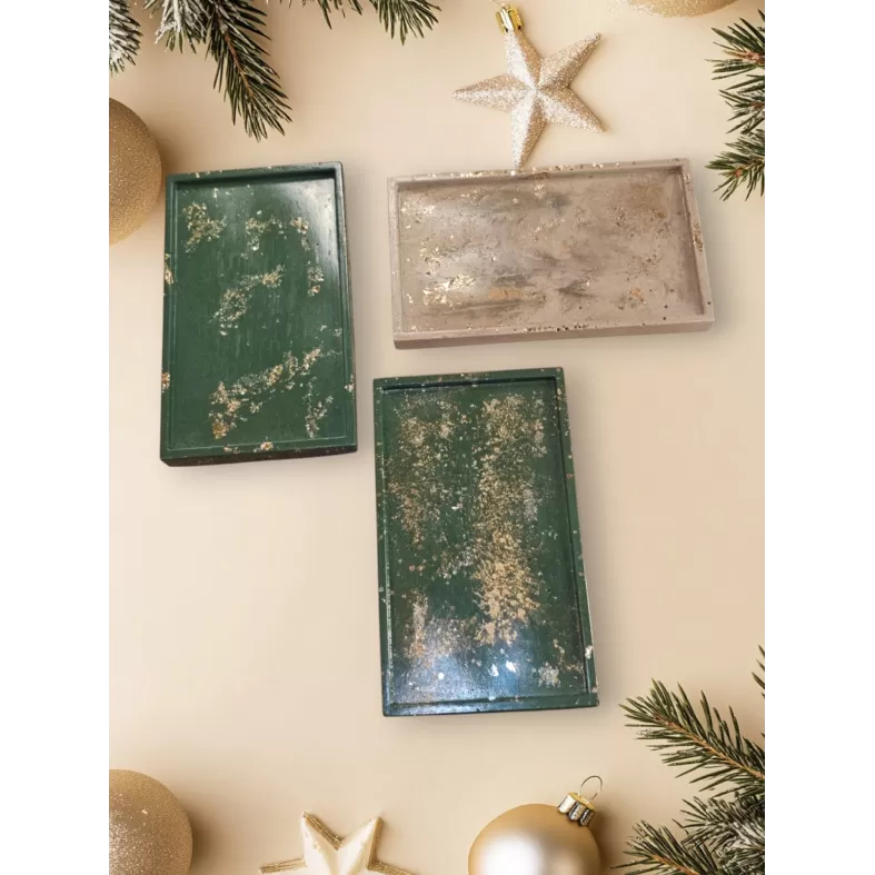 * 1 x Tavita decorativa dreptunghiulara verde inchis sau bej, cu detalii aurii, din ceramica handmade