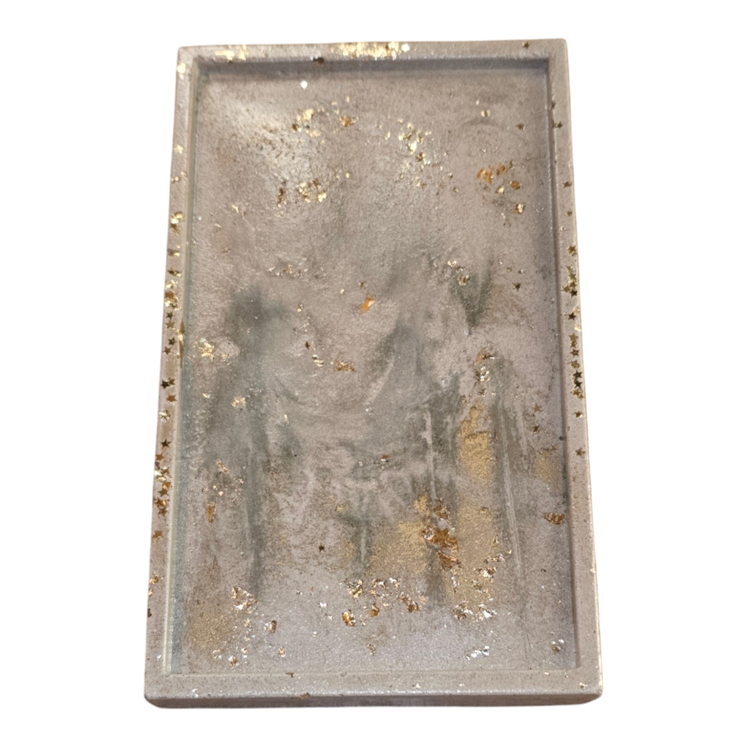 * 1 x Tavita decorativa dreptunghiulara bej cu detalii aurii, din ceramica handmade