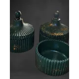 * 1 x Bol mic cu capac decorativ verde cu detalii aurii sau bej din ceramica handmade