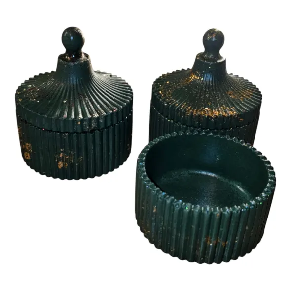 * 1 x Bol mic cu capac decorativ verde cu detalii aurii sau bej din ceramica handmade